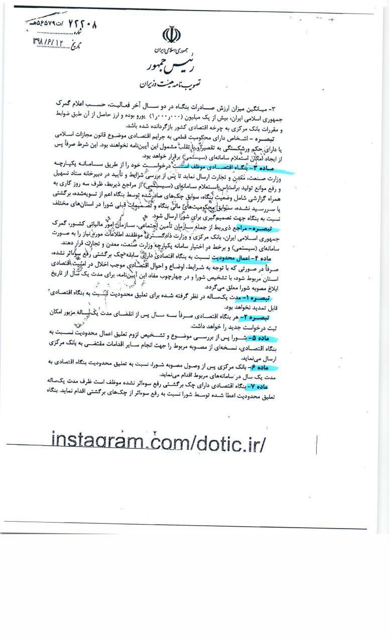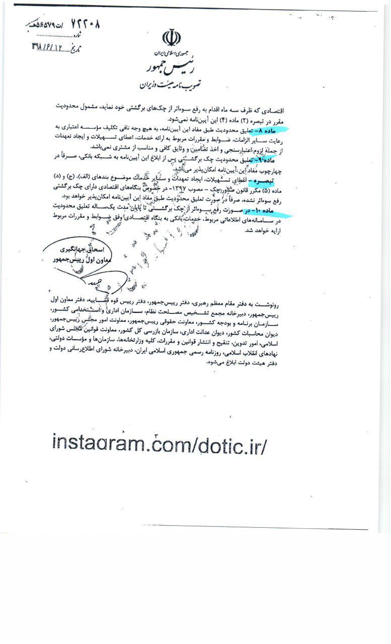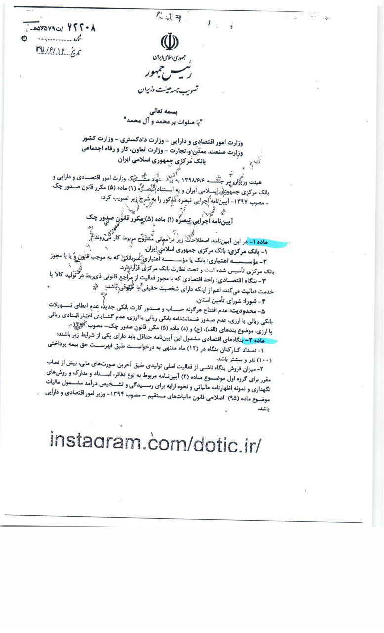 آیین نامه اجرایی تبصر(۱) ماده(۵) قانون صدور چک به شرح زیر می باشد