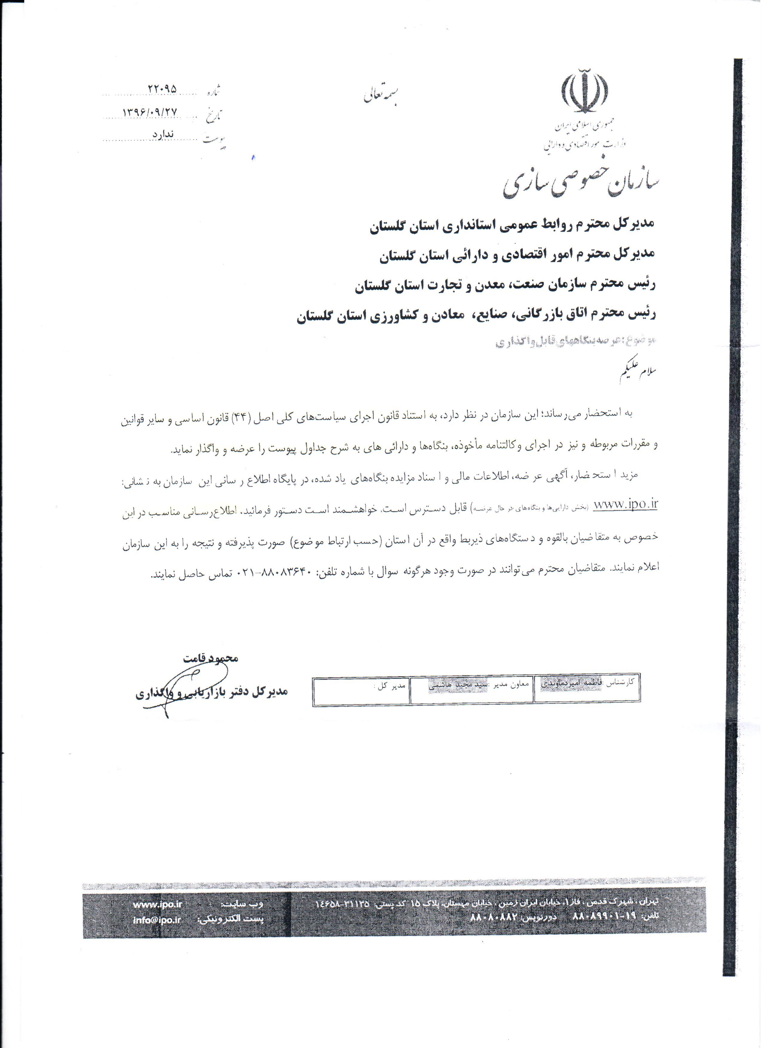 اطلاعات اموال و دارایی های قابل واگذاری دولتی مدیریت وب سایت 1396-10-05 اخبار, اطلاعیهها 813 بازدید نوشته های مرتبط برگزاری مجمع عمومی عادی به طور فوق العاده خانه صنعت،معدن و تجارت استان تهران 2 روز پیش گزارش عملکرد خانه صنعت معدن و تجارت استان تهران 1403 4 روز پیش بسته حمایت از صنایع به گمرکات ابلاغ شد 10 روز پیش اطلاعات اموال و دارایی های قابل واگذاری دولتی به شرح زیر است 1396-10-05 مدیریت وب سایت