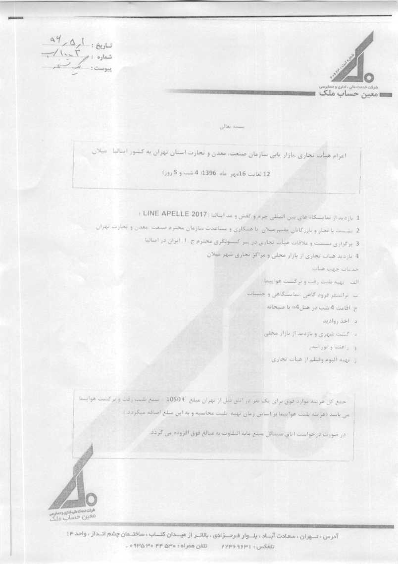 اعزام هیات تجاری و بازاریابی همزمان با برگزاری نمایشگاه بین المللی چرم و کفش و مد در مهرماه سالجاری به کشور ایتالیا مدیریت وب سایت 1396-05-11 اخبار, اطلاعیهها 1,103 بازدید نوشته های مرتبط برگزاری مجمع عمومی عادی به طور فوق العاده خانه صنعت،معدن و تجارت استان تهران 3 روز پیش گزارش عملکرد خانه صنعت معدن و تجارت استان تهران 1403 5 روز پیش بسته حمایت از صنایع به گمرکات ابلاغ شد 10 روز پیش اعزام هیات تجاری و بازاریابی همزمان با برگزاری نمایشگاه بین المللی چرم و کفش و مد در مهرماه سالجاری به کشور ایتالیا برای کسب اطلاعات بیشتر با شماره تلفن های ۸۳۲۱۱۳۴۷ سرکارخانم مشیری تماس حاصل نمایید. نمایشگاه بین المللی چرم و کفش 1396-05-11 مدیریت وب سایت