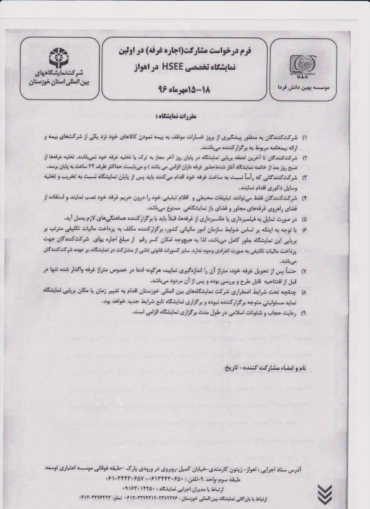 در تاریخ۱۵ تا۱۸ مهرماه سالجاری در استان خوزستان – اهواز محل دائمی نمایشگاههای بین المللی برگزار می گردد.