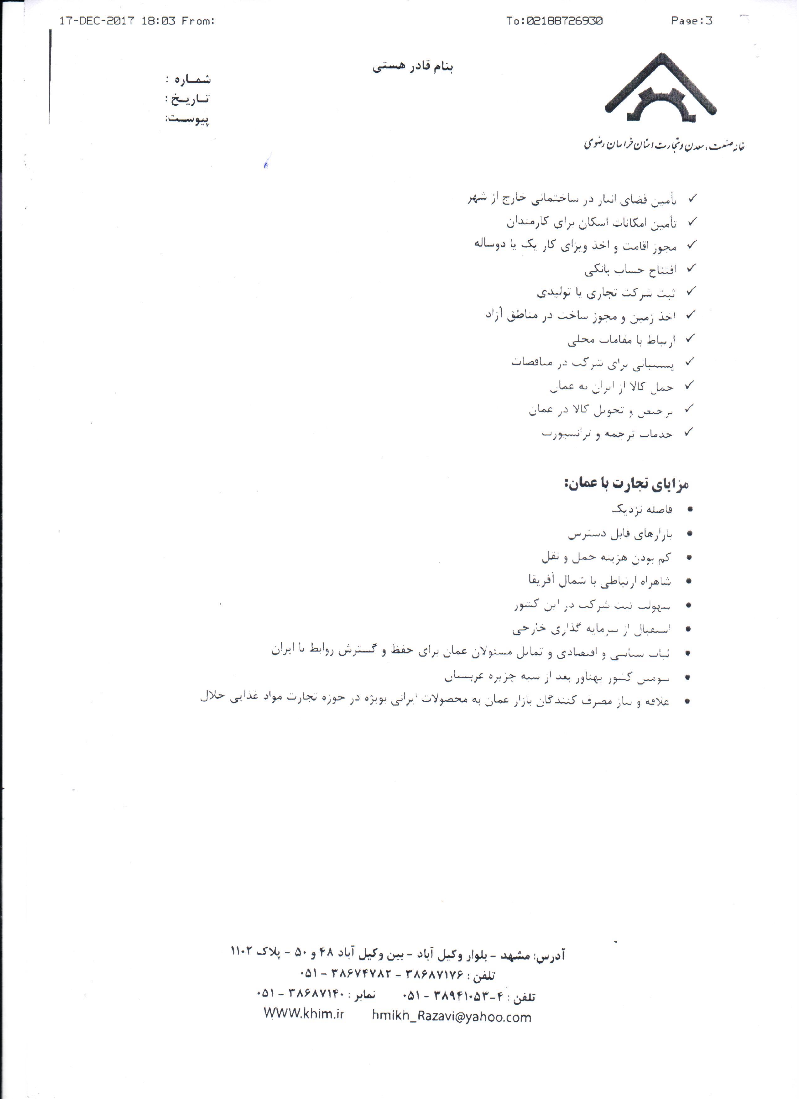 راه اندازی مرکز تجارت ایران در مسقط پایتخت کشور عمان مدیریت وب سایت 1396-09-28 اخبار, اطلاعیهها 1,047 بازدید نوشته های مرتبط برگزاری مجمع عمومی عادی به طور فوق العاده خانه صنعت،معدن و تجارت استان تهران 2 روز پیش گزارش عملکرد خانه صنعت معدن و تجارت استان تهران 1403 4 روز پیش بسته حمایت از صنایع به گمرکات ابلاغ شد 10 روز پیش راه اندازی مرکز تجارت ایران در مسقط پایتخت کشور عمان توسط خانه صنعت و معدن و تجارت خراسان رضوی مسقط پایتخت کشور عمان 1396-09-28 مدیریت وب سایت